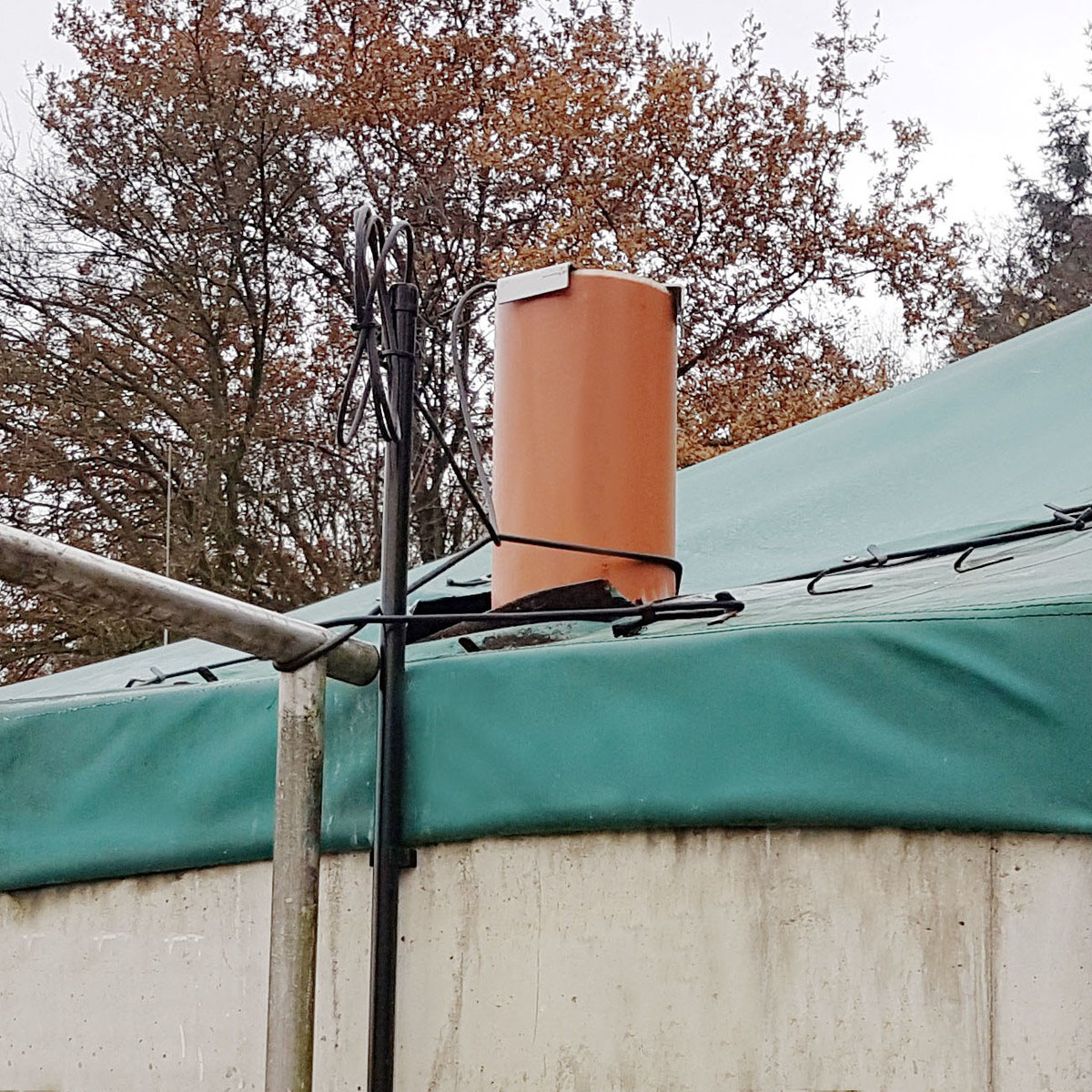 40 m³ silo with insulated support skirt, fixed ladder, and platform on the silo roofSilo with fixed ladder and platform on the silo roofControl cabinet with integrated touch panelTouch panel for system control and evaluationDosing into the mixing tank via dosing screw, water inlet, measuring probe for max. fill level, inspection opening Ø 250 mm, fine dust filter Peristaltic pump 0.75 kW, water pipes, and valvesWater inlet, lime milk line, various valvesDosing of lime milk into the mixing and equalization tank, lime milk line with trace heating tapepH measuring sensor