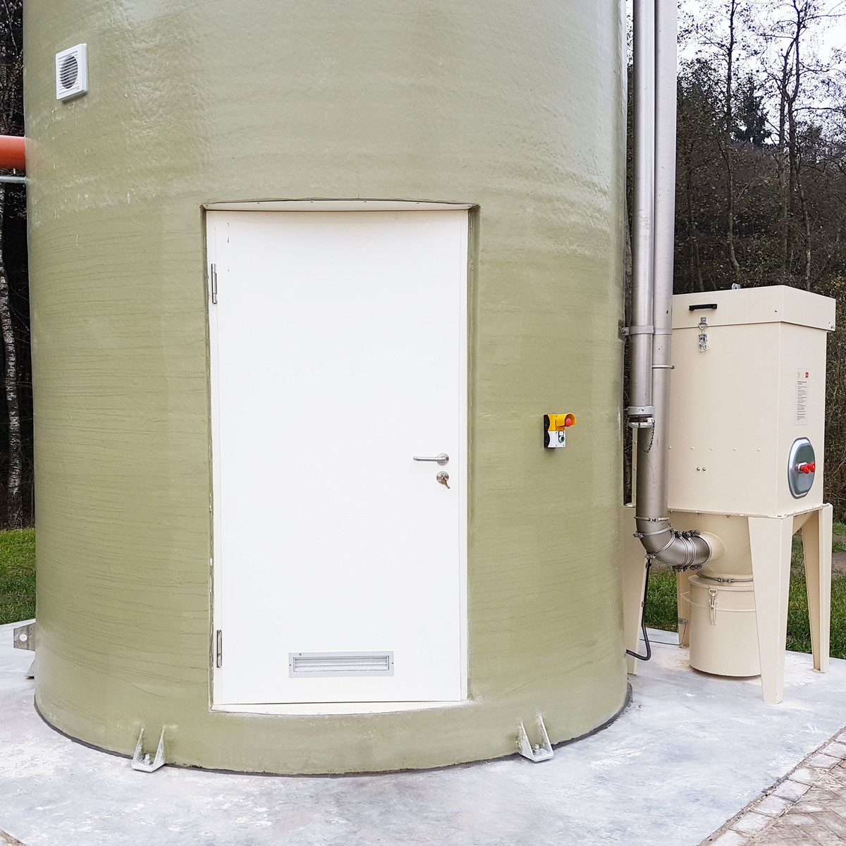 The floor-level, insulated GRP storage silo serves as an enclosure for all components