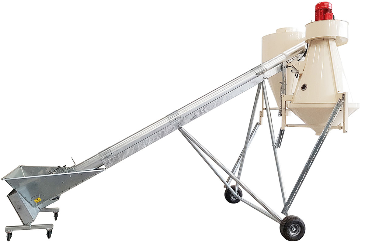 Our pre-cleaner is used for the high-performance pre-cleaning of your bulk material. It works according to the air classifier principle and quickly and effectively separates your product from lighter particles, such as dust or small grains. By combining it with our mobile tubular screw conveyor, the pre-cleaner can be used quickly and in any location.