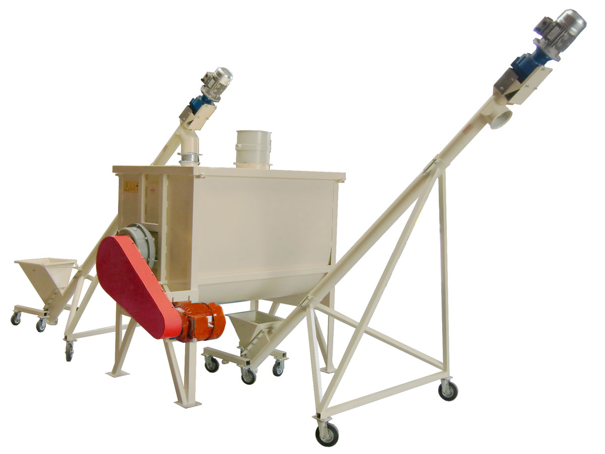 Der Horizontalmischer mit innenliegender, großer Mischwelle ist in unterschiedlichen Größen und Ausführungen lieferbar. Die besondere Ausführung der Mischwelle sorgt für eine schnelle und genaue Vermischung der Produkte. Der restlose Austrag erfolgt automatisch oder per Hand über einen Schieber im Mischerboden. Durch den Einsatz eines 4-Punkt-Wiegesystems (je Stütze eine Wiegezelle) ist eine exakte Dosierung der Mischkomponenten gewährleistet.