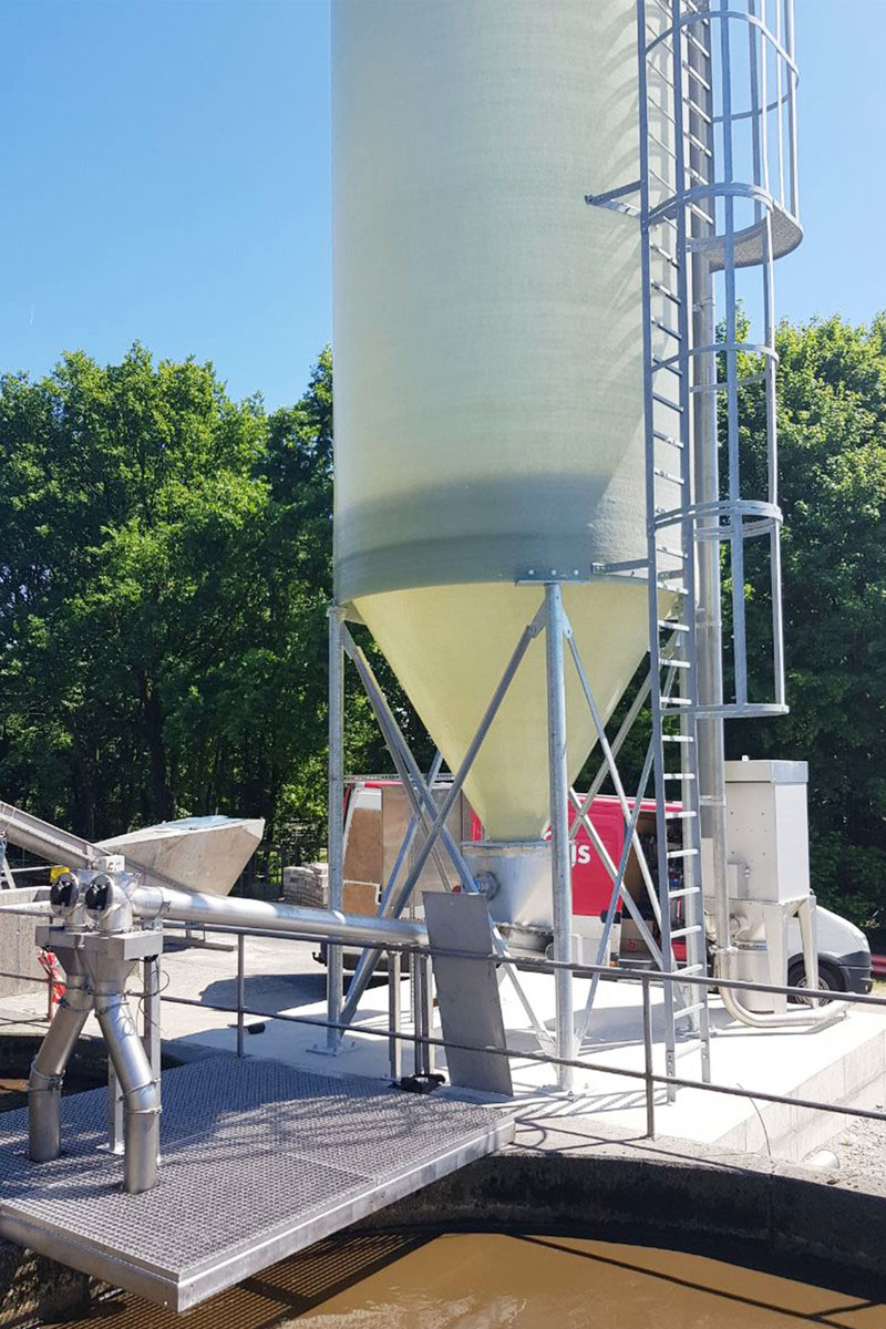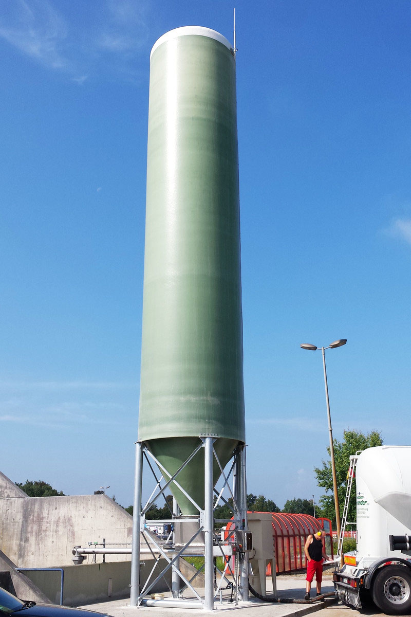 Der GFK Lagersilo mit sehr glatten Innenwänden garantiert eine sichere Entleerung des Lagergutes.
